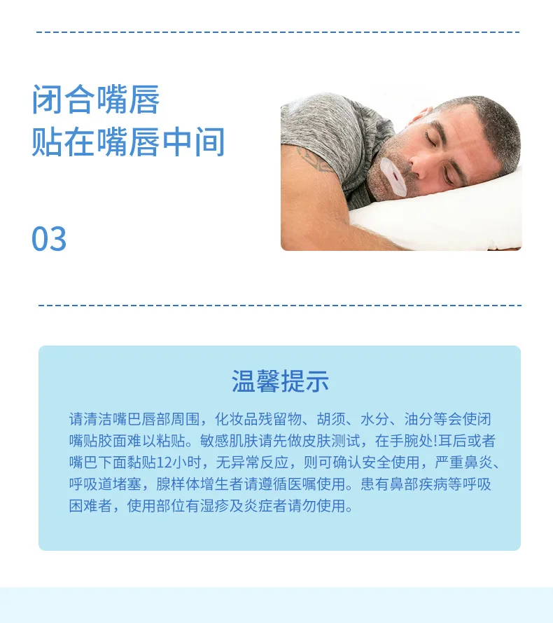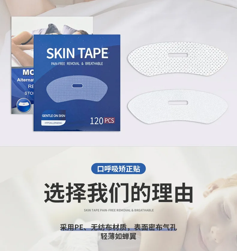 Anti-snoring mouth breathing tape designed to improve sleep quality.