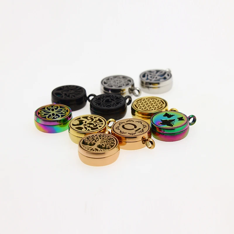 Durable stainless steel with a secure magnetic locket design and absorbent diffuser pads.
