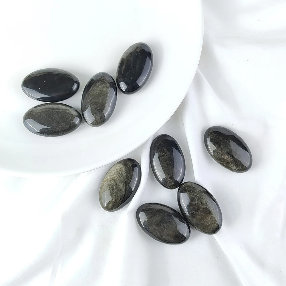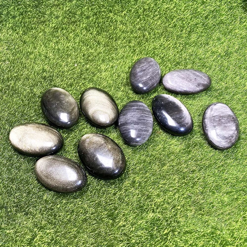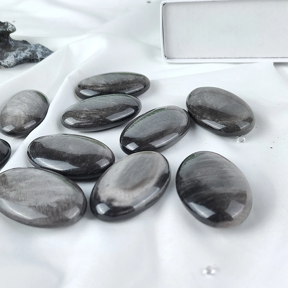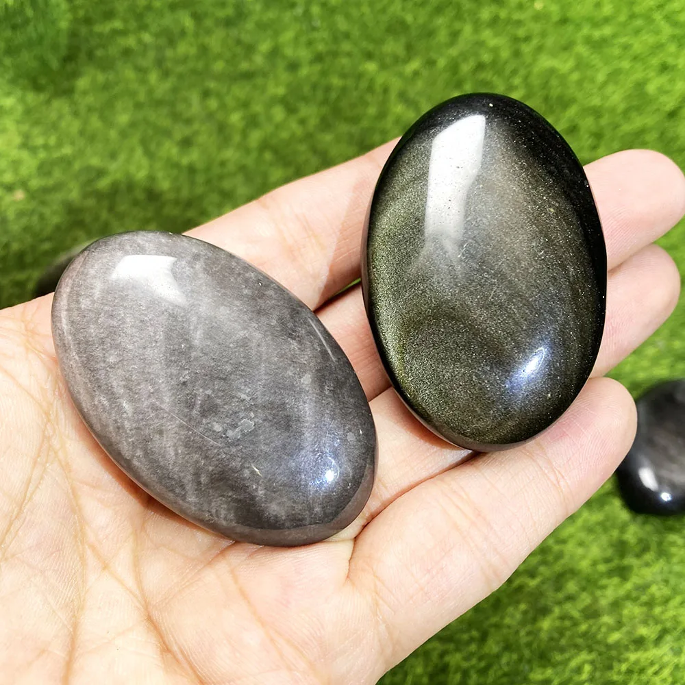 1PC Silver Golden Obsidian Palm Stone – Natural Oval Crystal for Feng Shui, Healing & Meditation