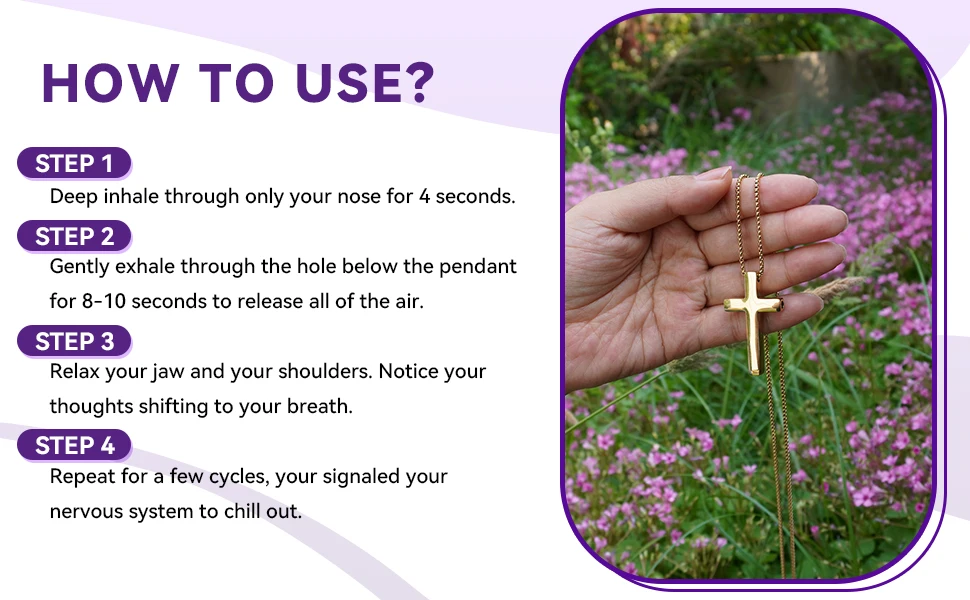 Find calm and inspiration with the Cross Breathing Necklace — a stainless steel mindfulness tool engraved with a Bible verse, designed to support anti-anxiety breathing techniques and help quit smoking.
