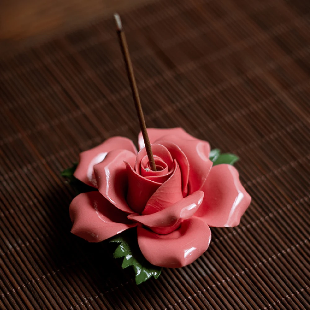 Handmade Ceramic Rose Incense Burner – Rose Fragrance Holder for Home Decor & Valentine’s Day Gift