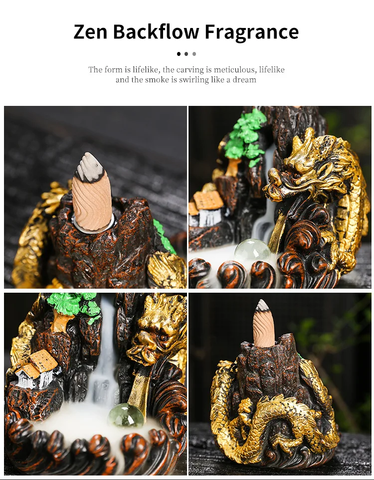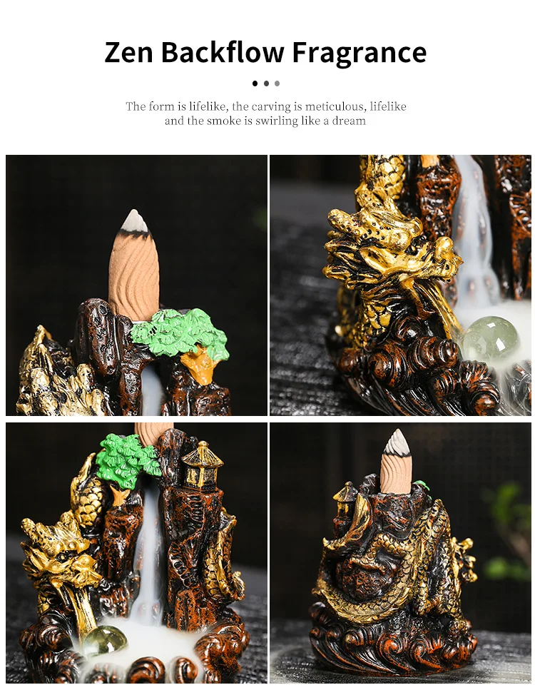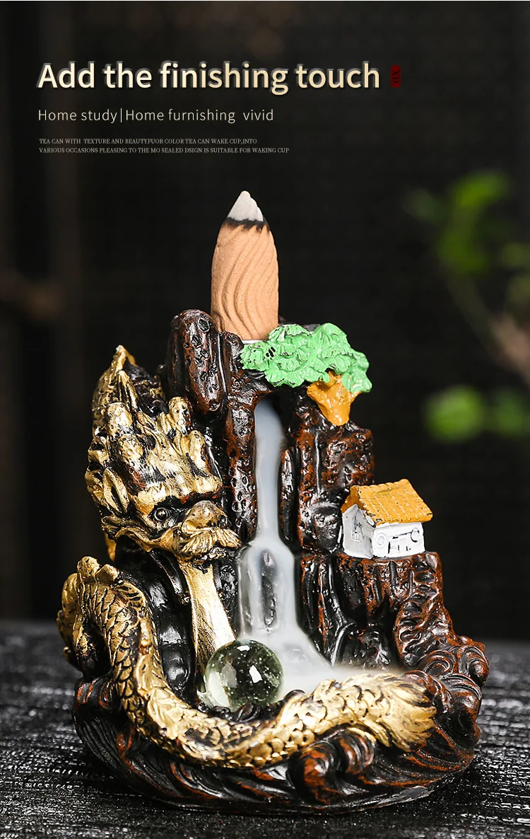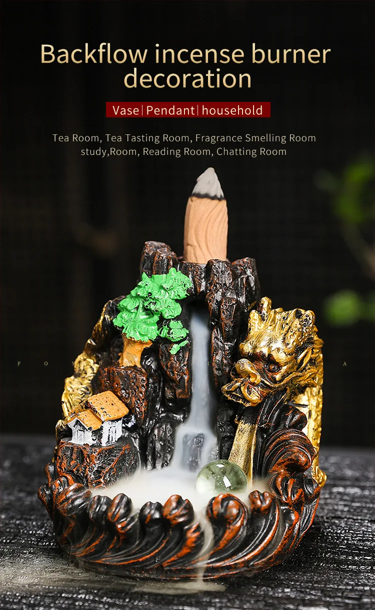 High Mountain Flowing Water Reflux Incense Burner – Bergamot Dragon Indoor Aroma Diffuser & Decorative Craft