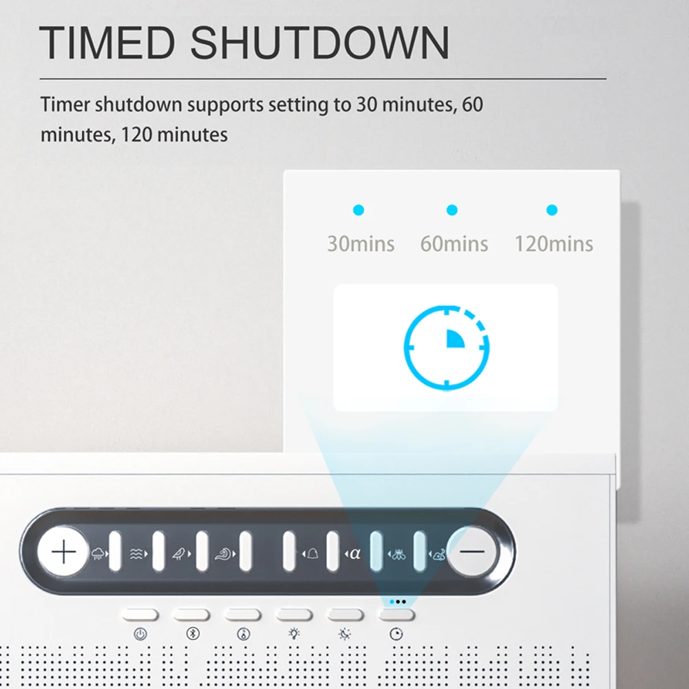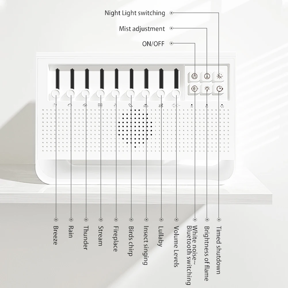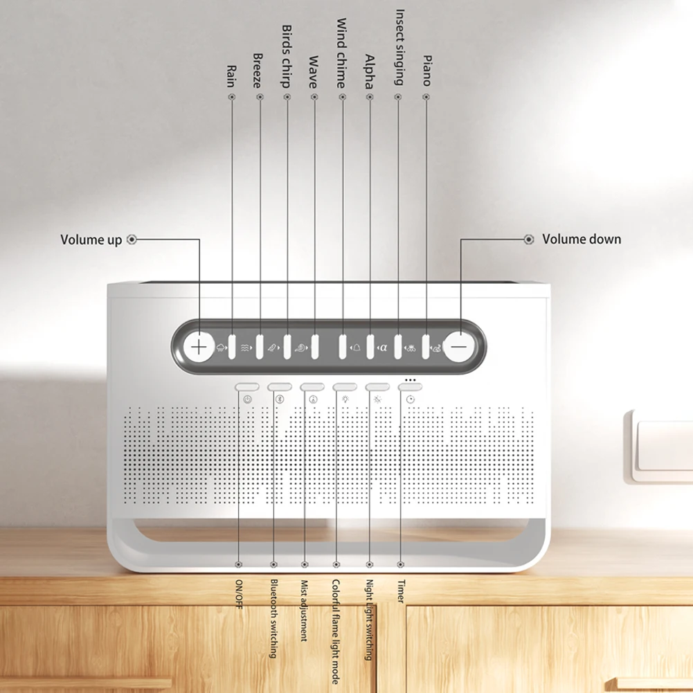 Portable Bluetooth speaker featuring 8 nature sounds and colorful night lights for sleep.