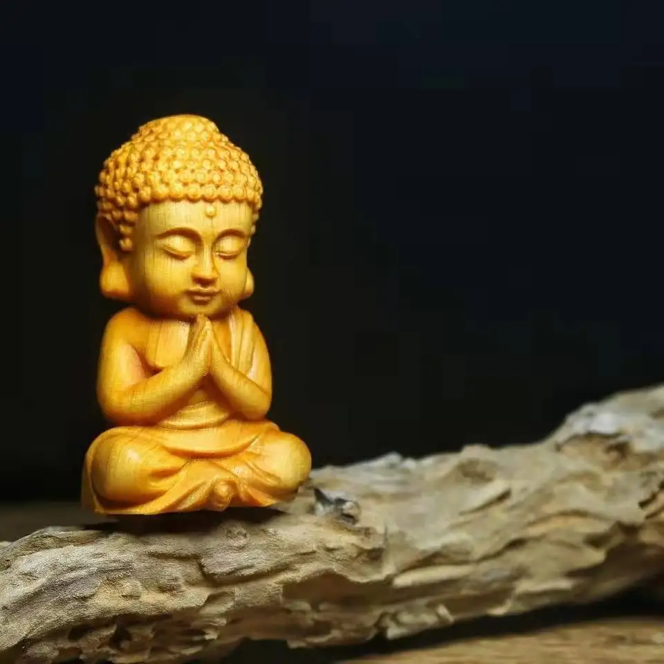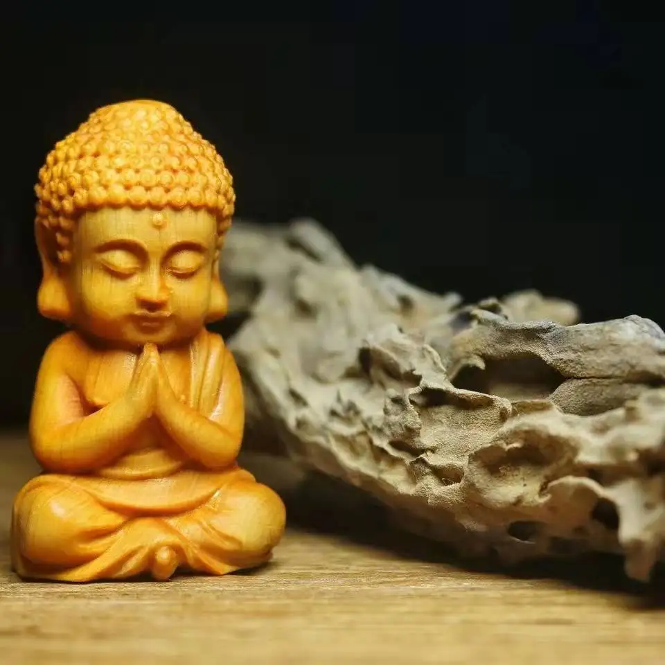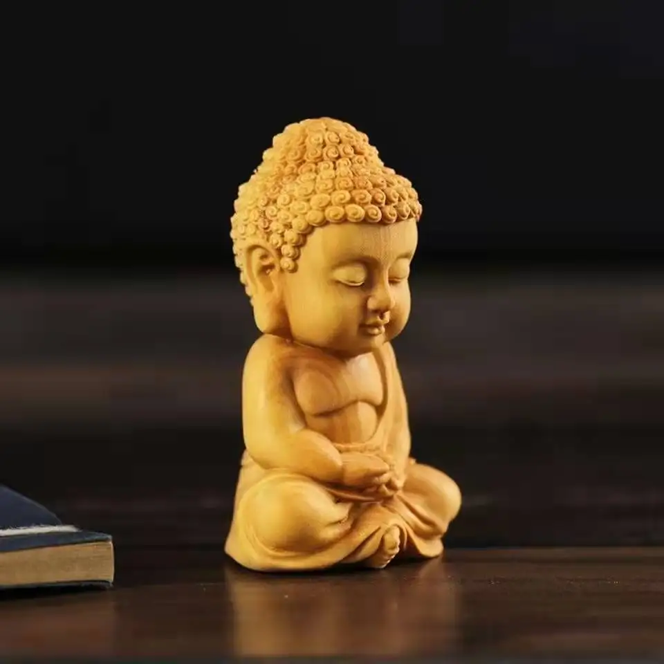 Miniature Woodcarving Baby Buddha Interior Accessories for Home Decor
