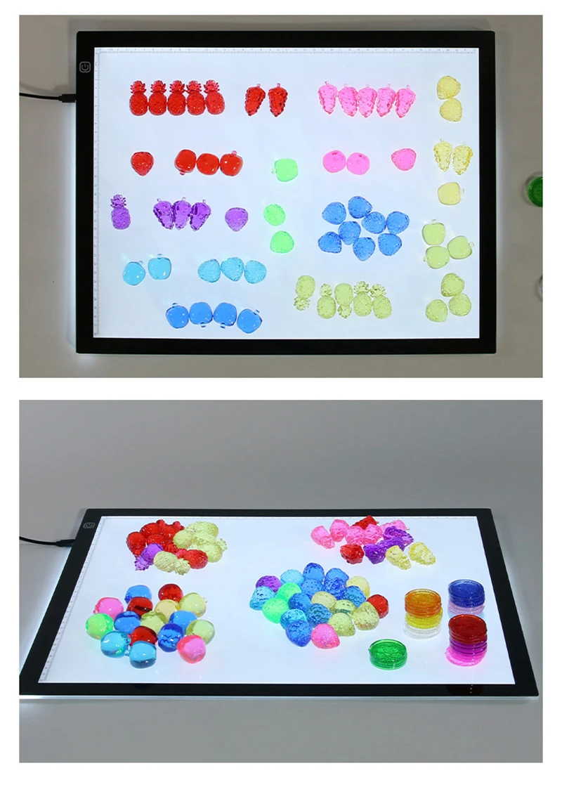 - LED light panel enhances colors and textures for vibrant sensory experiences