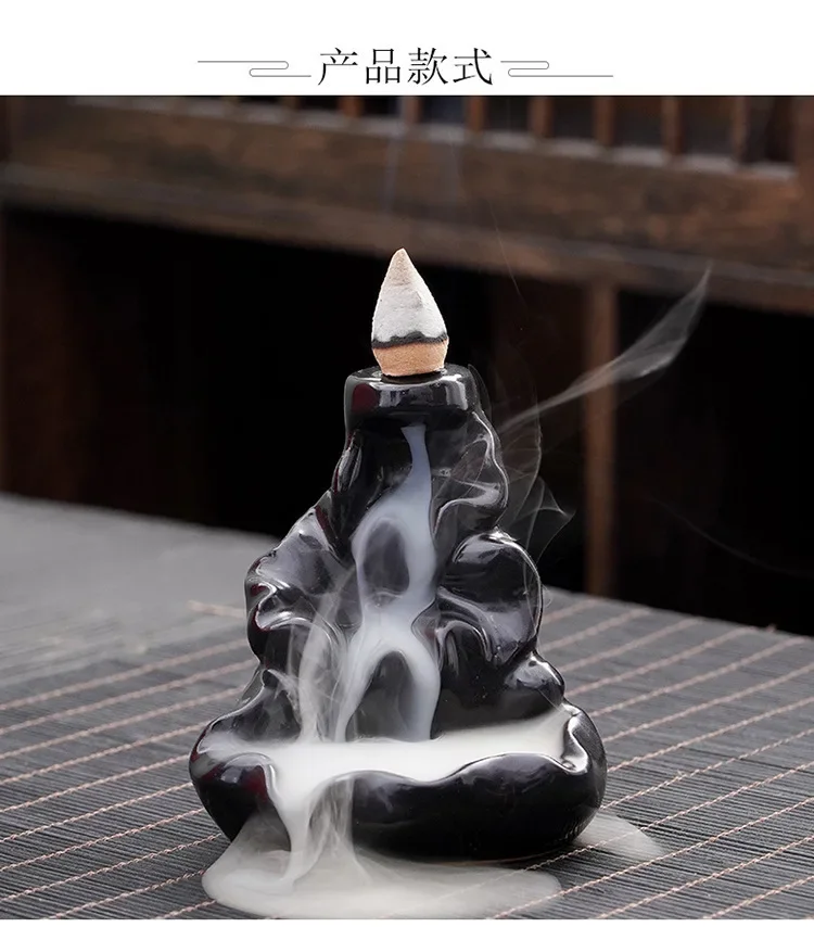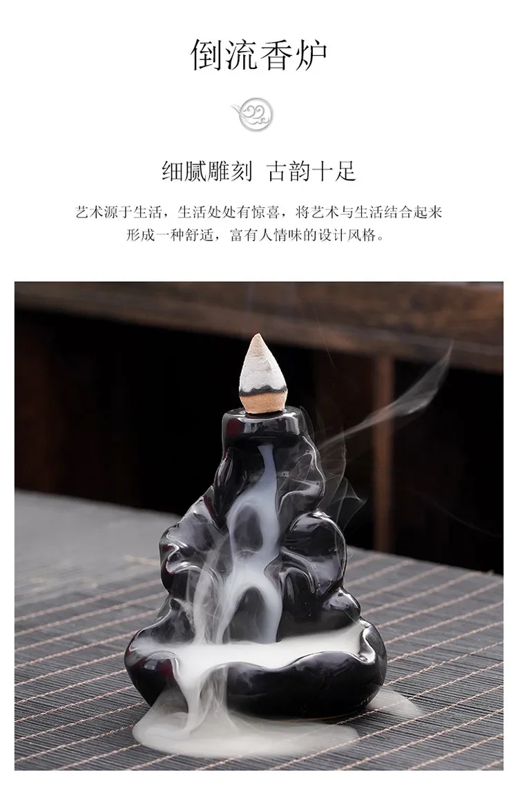 Designed for backflow incense cones – smoke cascades down like a real waterfall