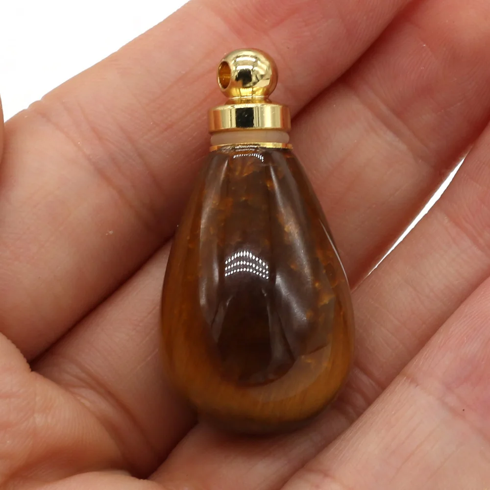 Blend beauty and wellness with these natural gemstone perfume bottle pendants — elegant round drop-shaped charms perfect for DIY necklaces and essential oil diffusion on the go.