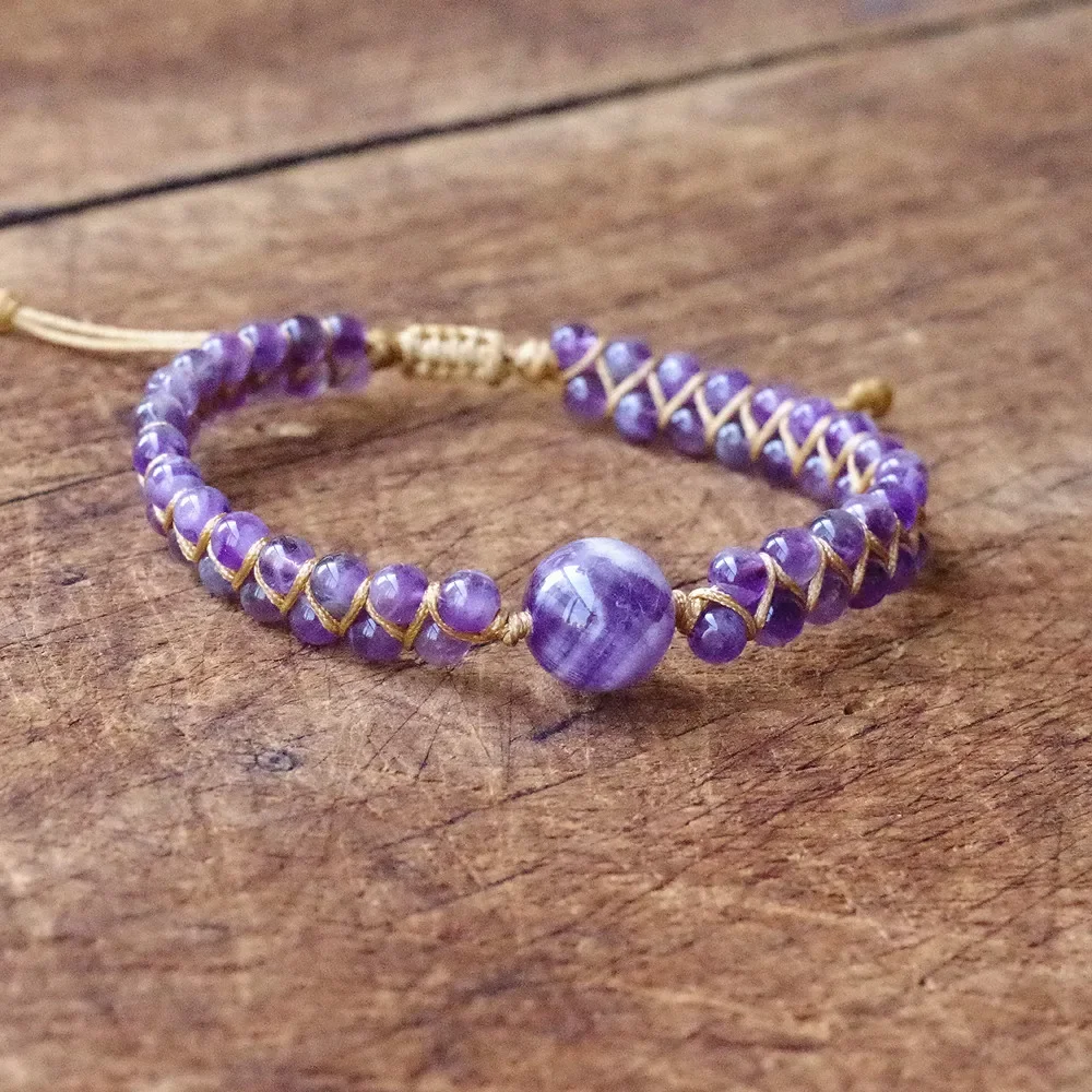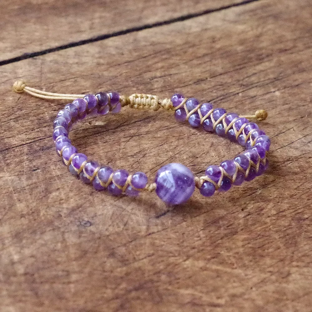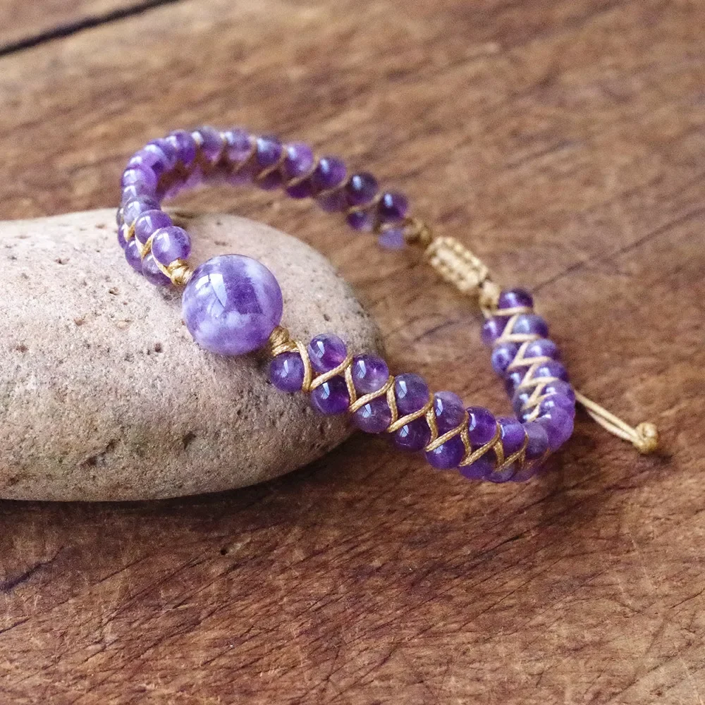 Natural Stone Braided Yoga Bracelet – Handmade Boho Charm Wrap Bracelet for Women